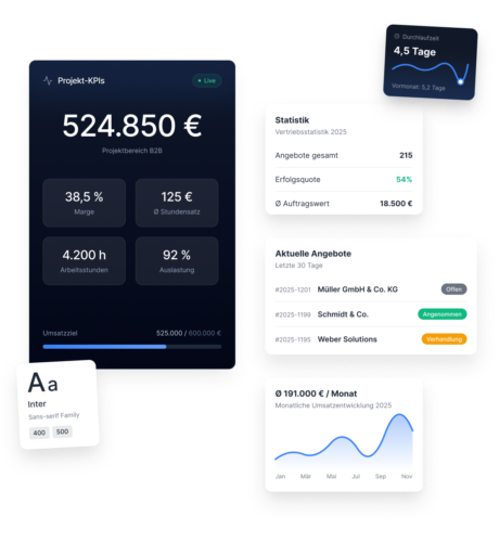 Mein Fokus liegt auf B2B-Webanwendungen: SaaS-Plattformen, interne Tools, Dashboards. Rollen und Rechte, Zustände und Datenflüsse sind mir bekannt.